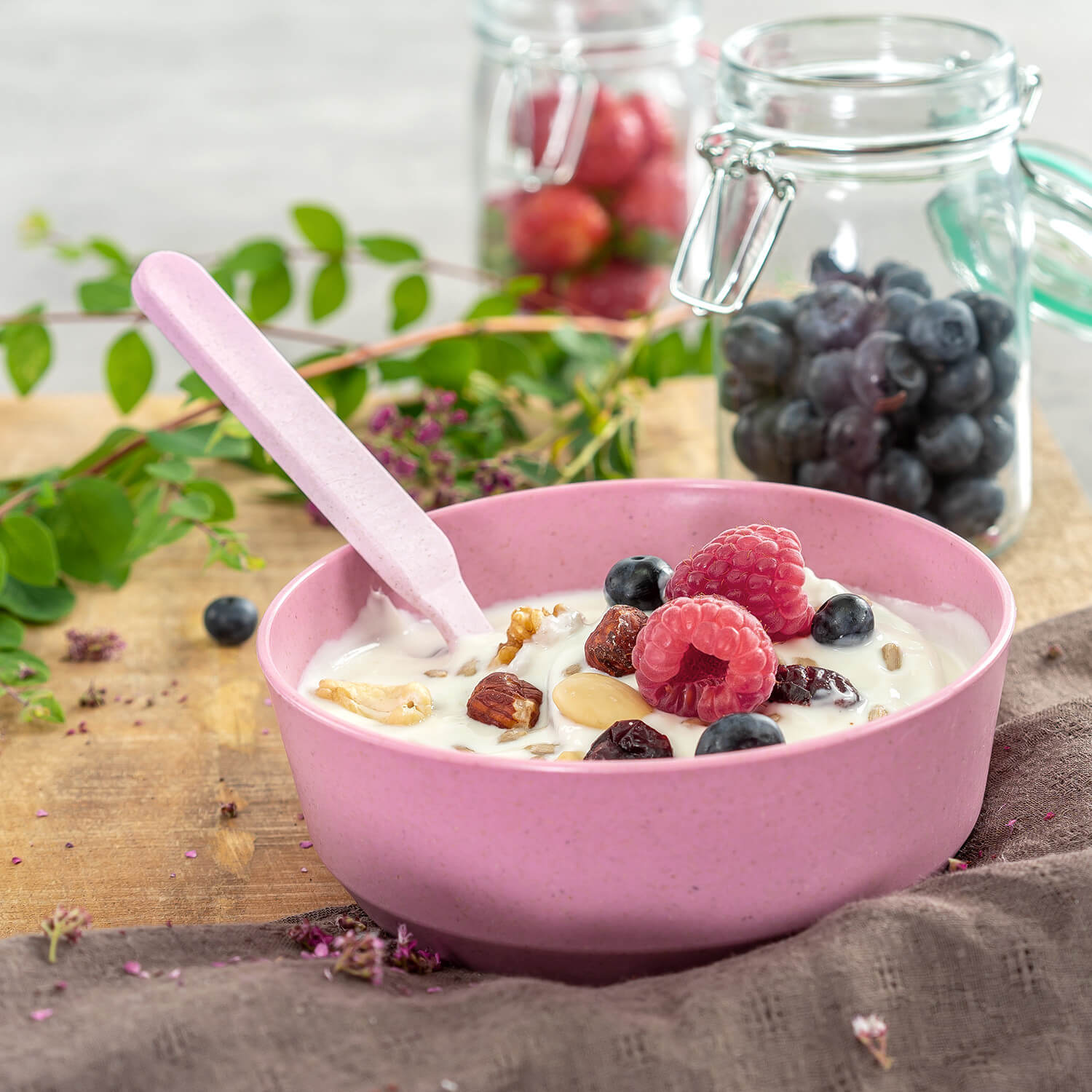 Вечеря за нашите малки с грижа за околната среда Независимо дали става въпрос за закуска, обяд или вечеря, за малките деца всяко хранене е шанс за експерименти. Нашите прибори от гамата за отглеждане са особено подходящи за научаване на самостоятелно хранене - като размер и тегло те са оптимално проектирани за двигателната активност и силата на малките деца. Благодарение на производствения процес, който спестява ресурси, нашите продукти за отглеждане са особено устойчиви - позволявайки ни да допринасяме за защитата на нашата планета и така за бъдещето на нашите деца. Добавено забавление по време на хранене благодарение на цветове и мотиви, които децата обичат Ястията, ядени от прибори за хранене в весели цветове, автоматично имат много по-добър вкус, тъй като не само самата храна определя дали вашето мъниче се наслаждава на тяхното хранене. Ето защо комплектите за прибори за маса осигуряват перфектни комбинации от брилянтен цвят и извикват ярко декорирана маса - изцяло съобразена с вкуса на вашето дете. Това стимулира любопитството и интереса към храната, като същевремен...