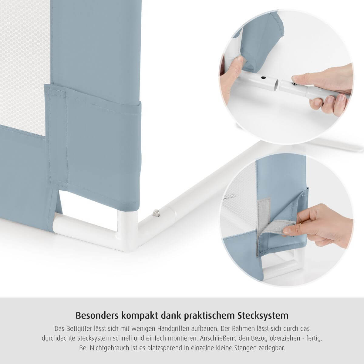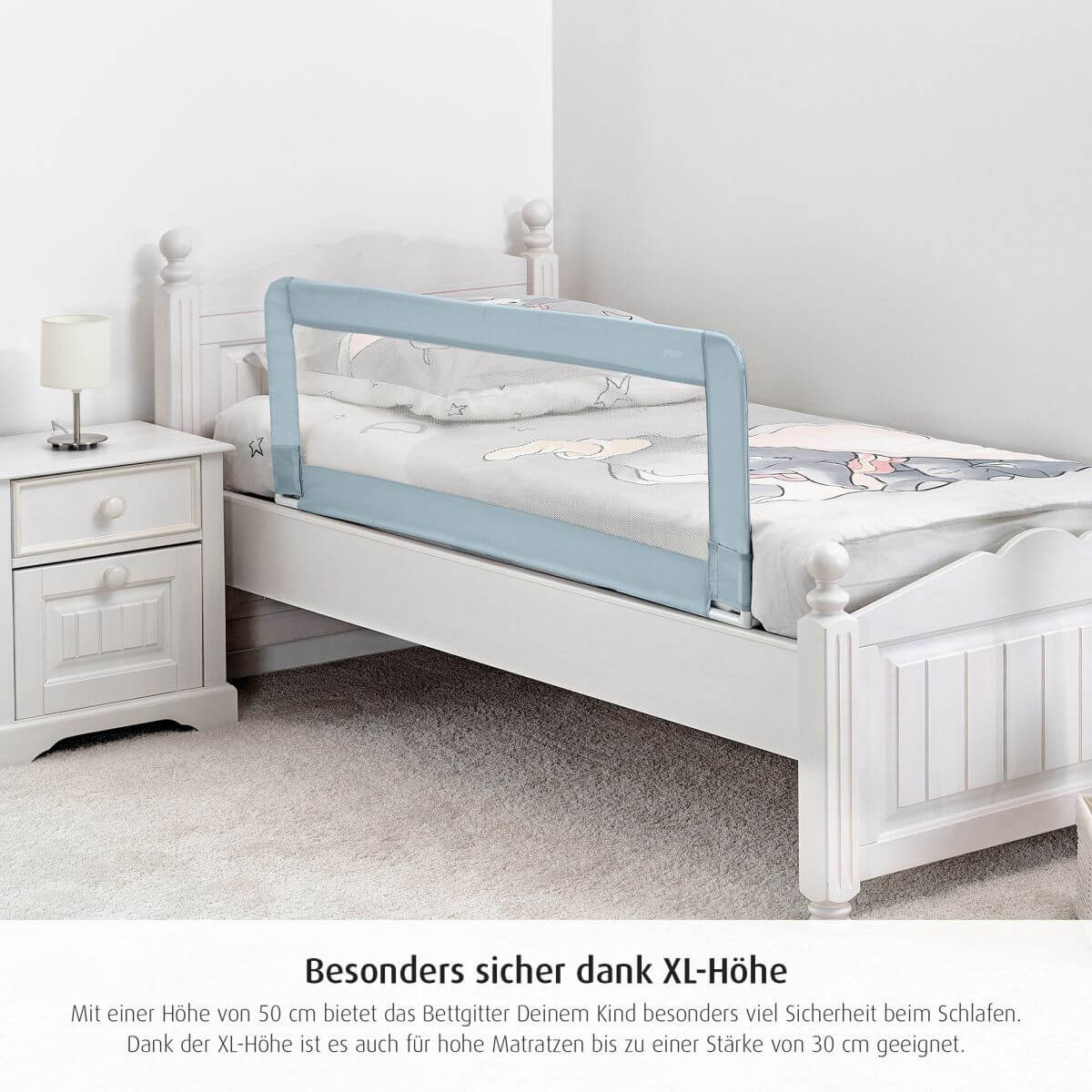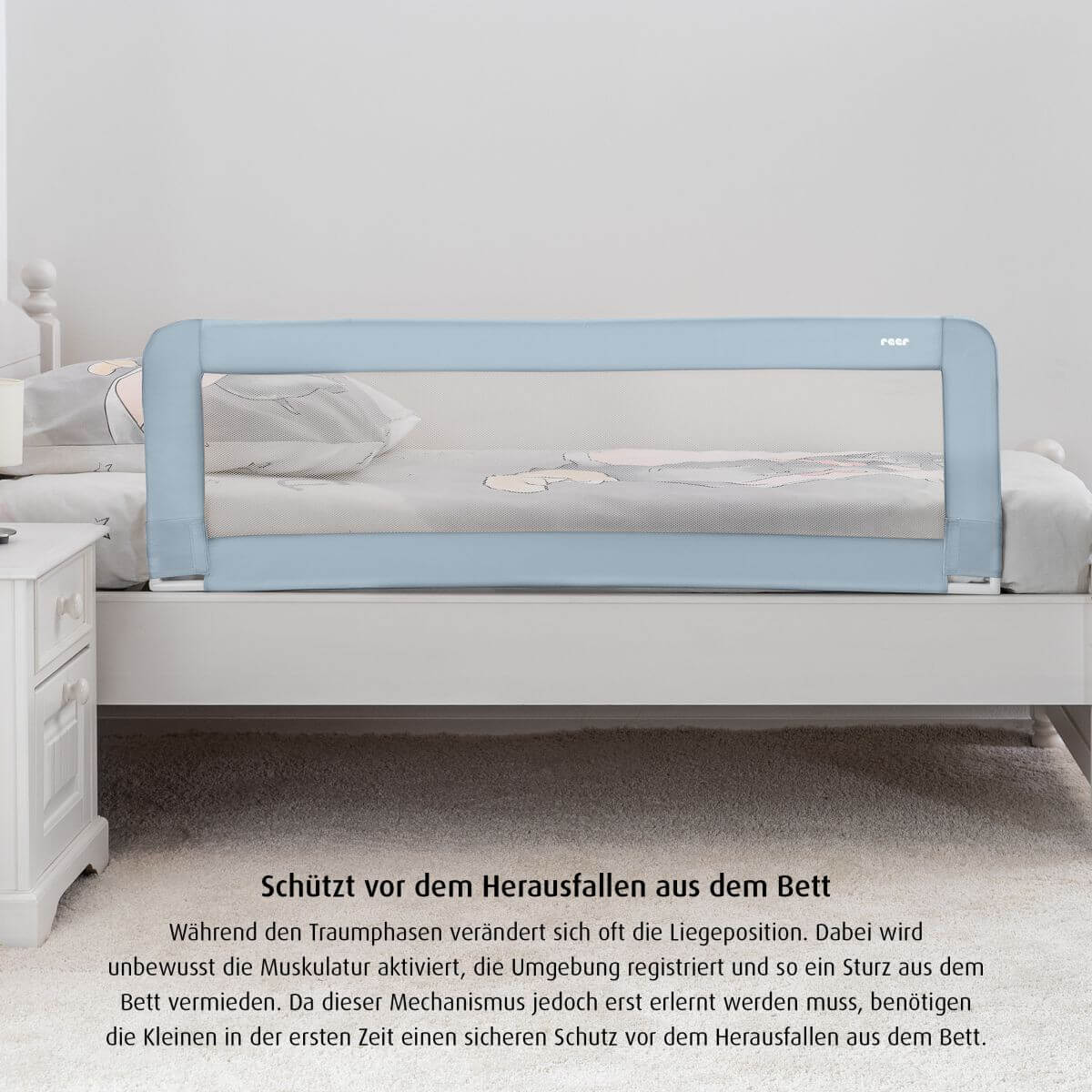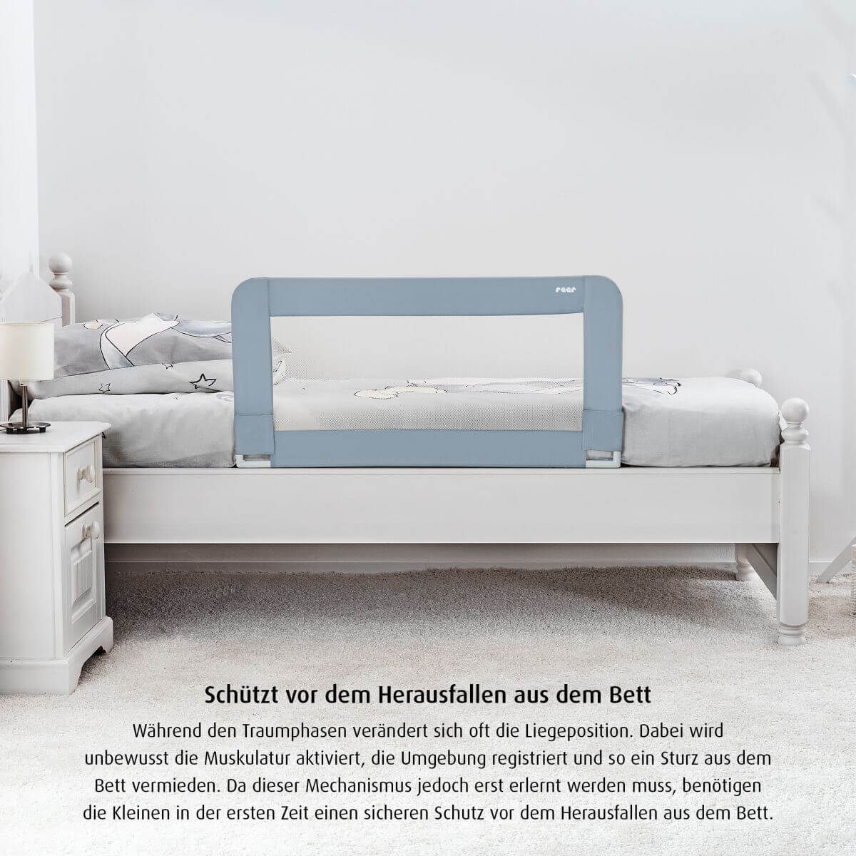 Предпазва от падане от леглото Малките деца, както и възрастните се движат по време на сън и често се въртят по време на различните фази на съня. Това несъзнателно активира мускулите, регистрира околната среда и по този начин предотвратява падане от леглото. Въпреки това, този инстинктивен механизъм първо трябва да бъде научен, все още не функционира перфектно при малки деца. Опората за легло предлага сигурна защита срещу падане от леглото. Малките деца и бебетата са изложени на риск от падане Центърът на тежестта на бебетата и малките деца е много по-висок от този на възрастните, поради което те често получават наранявания на главата дори при падане от ниска височина. Особено при новородени това може да доведе до тежки черепно-мозъчни наранявания. Падането от леглото може да бъде предотвратено от преградата за легло. Освен всичко друго, те улесняват прехода от детското легло към по-голямото младежко легло. Височина от 50 см осигурява повече безопасност С височина от 50 см преградата за легло Sleep'n Keep предлага на вашето дете допълнителна сигурност по време на сън. Благодарение на...