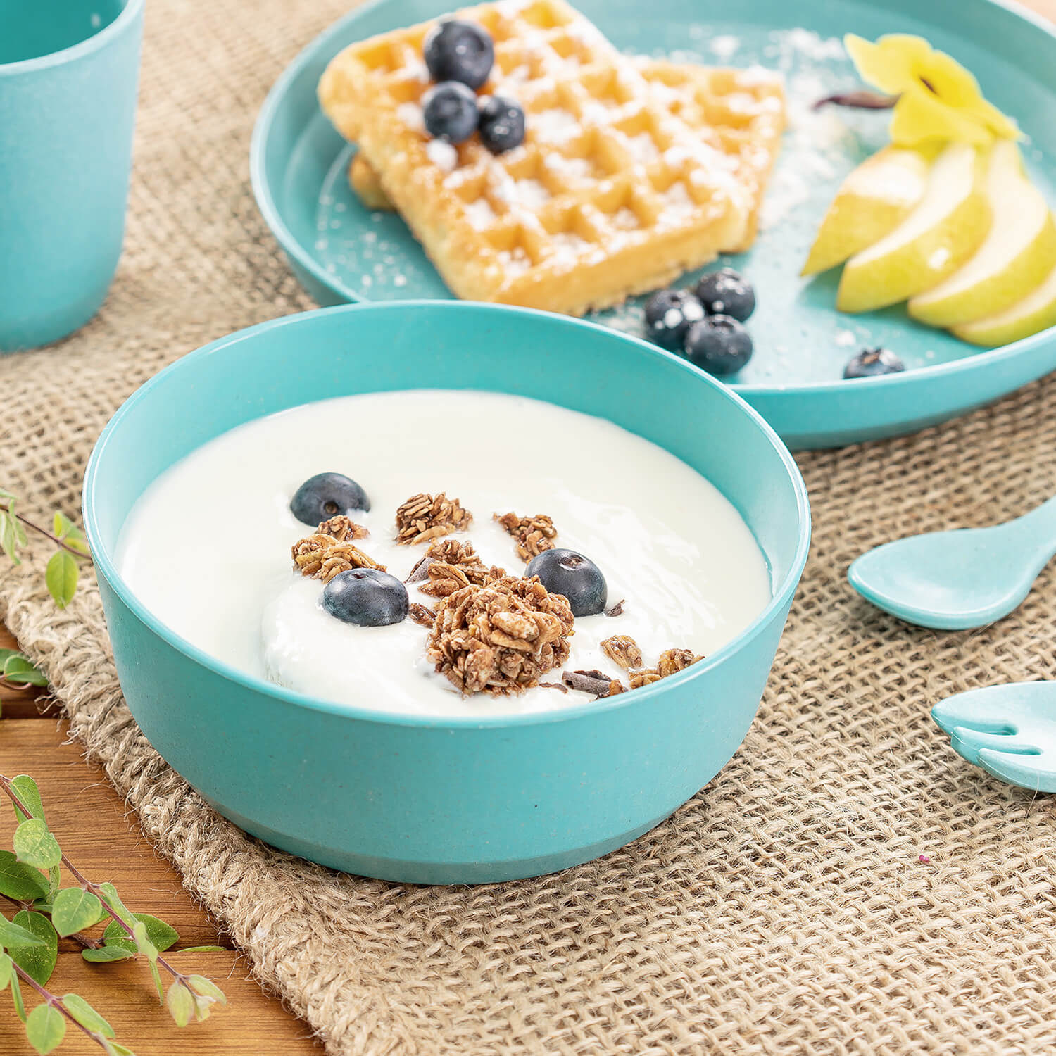 Хапване за нашите малки с грижа за околната среда Независимо дали става въпрос за закуска, обяд или вечеря, за малките деца всяко хранене е шанс за експерименти. Нашите купички от гамата за отглеждане са особено подходящи за научаване на самостоятелно хранене - като размер и тегло те са оптимално проектирани за двигателната активност и силата на малките деца. Благодарение на производствения процес, който спестява ресурси, нашите продукти за отглеждане са особено устойчиви - позволявайки ни да допринасяме за защитата на нашата планета и така за бъдещето на нашите деца. Добавено забавление по време на хранене благодарение на цветове и мотиви, които децата обичат Ястията, ядени от прибори за хранене в весели цветове, автоматично имат много по-добър вкус, тъй като не само самата храна определя дали вашето мъниче се наслаждава на тяхното хранене. Ето защо комплектите за прибори за маса осигуряват перфектни комбинации от брилянтен цвят и извикват ярко декорирана маса - изцяло съобразена с вкуса на вашето дете. Това стимулира любопитството и интереса към храната, като същевременно ...