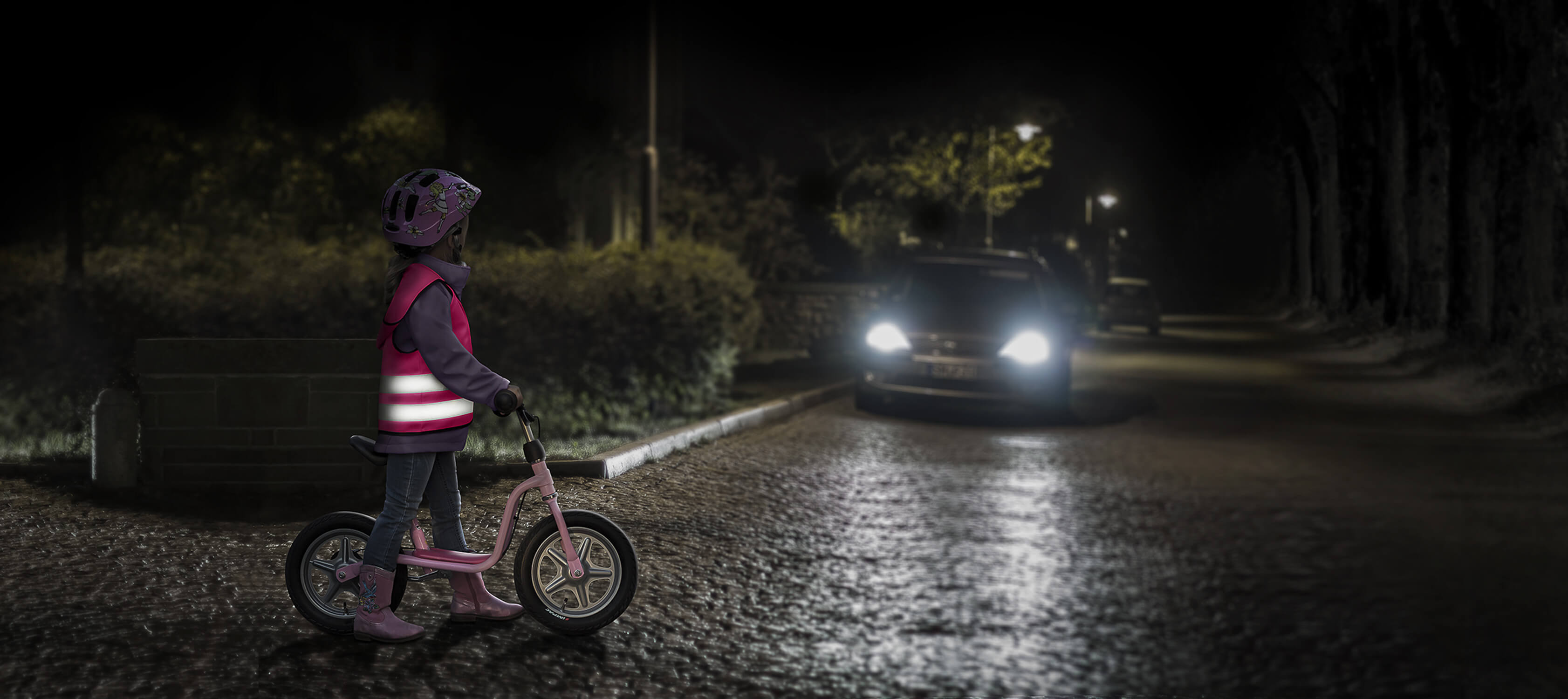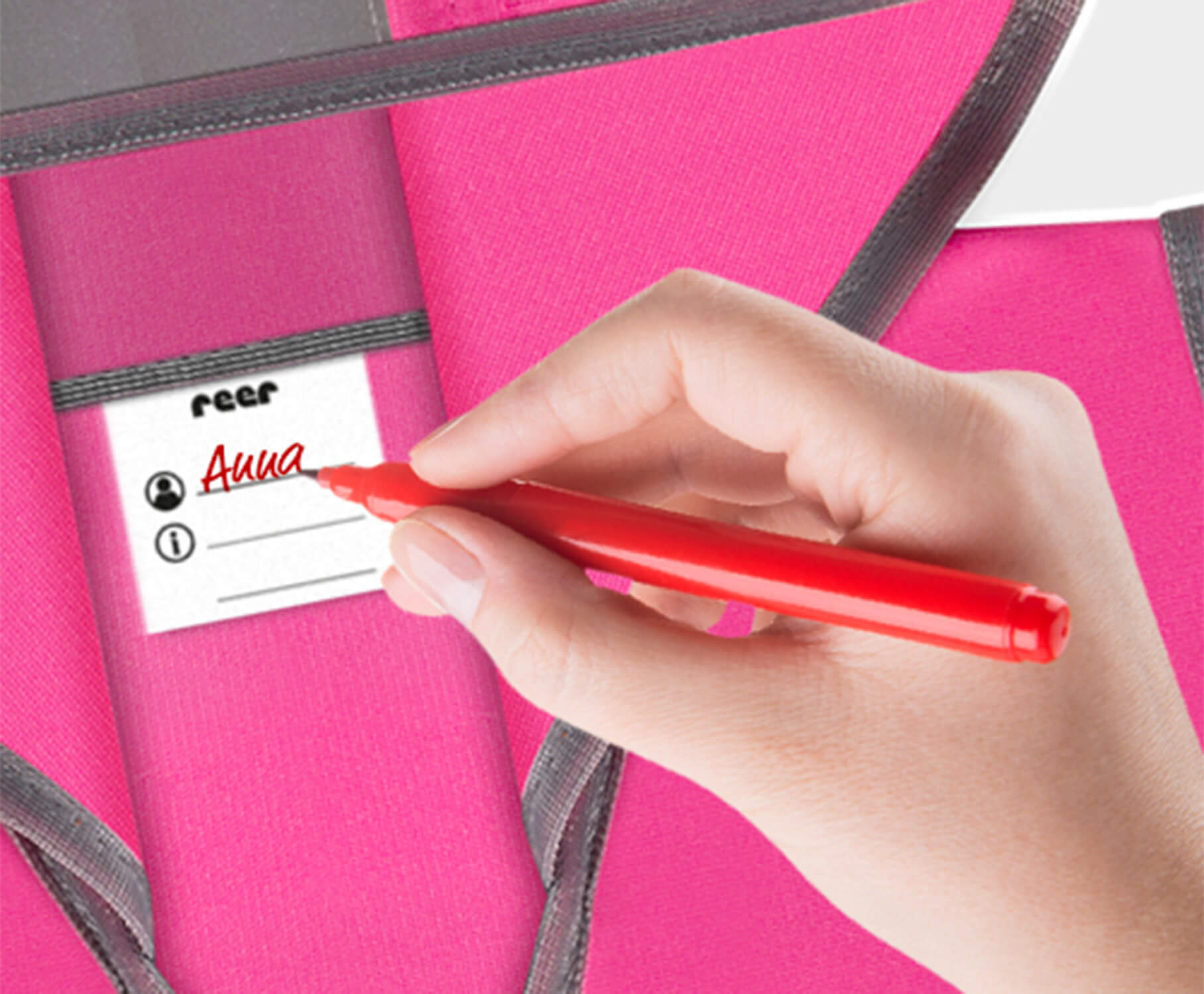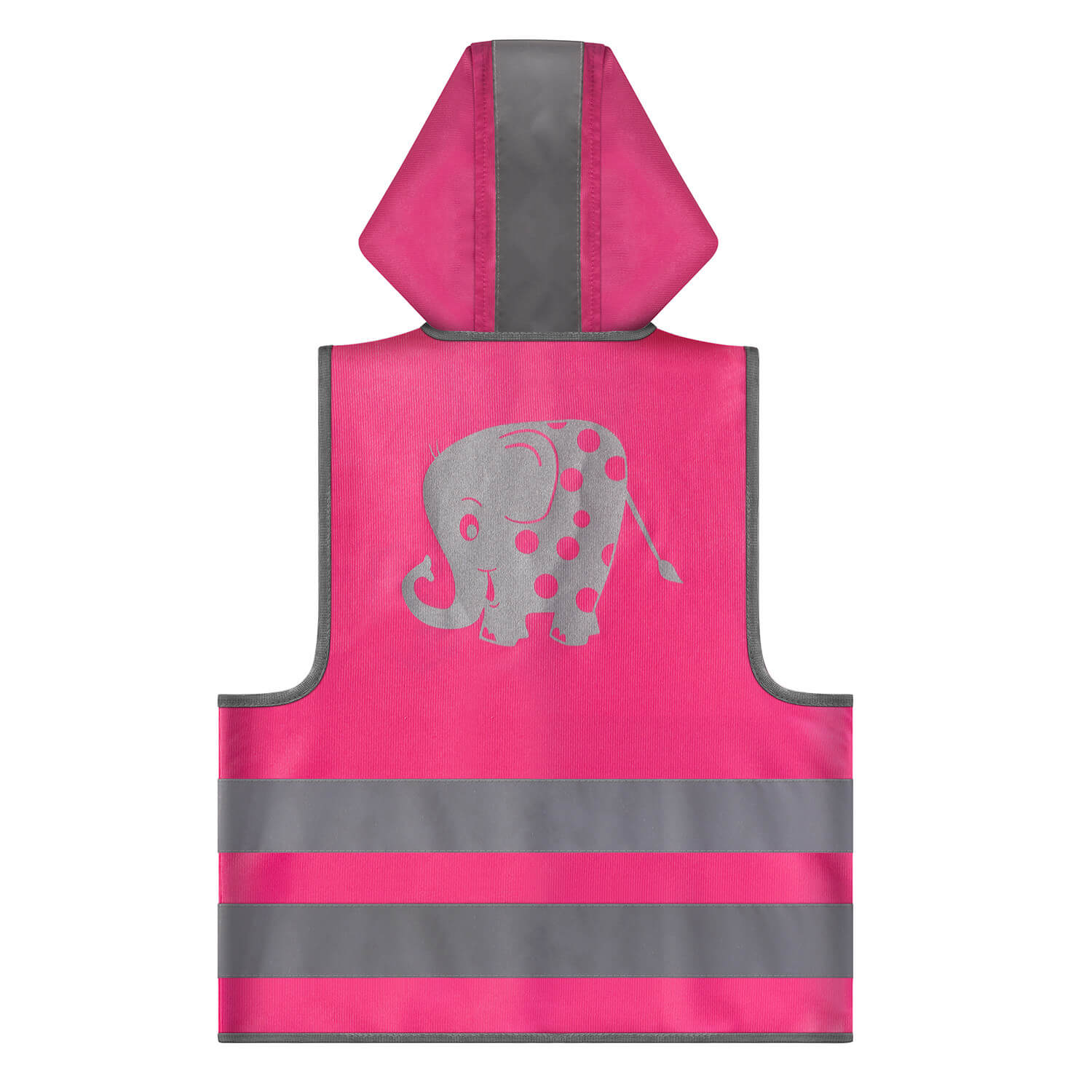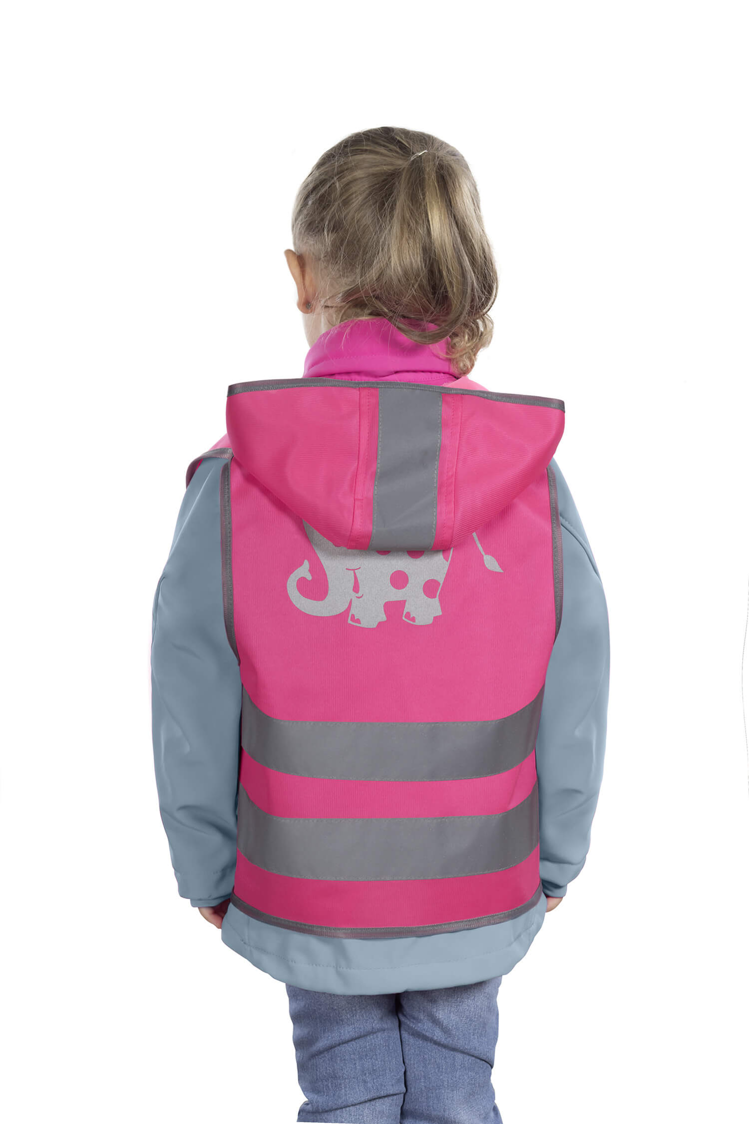 Увеличава видимостта в тъмното и при лошо време Ярките сигнални цветове и 2 широки отразителни ленти Практична качулка също с отразителна лента Детски светлоотразителни мотиви Велкро закопчалка за регулиране на размера Поле за надписване Широка кройка за удобно обличане върху нормалните дрехи Материал: полиестер, пере се