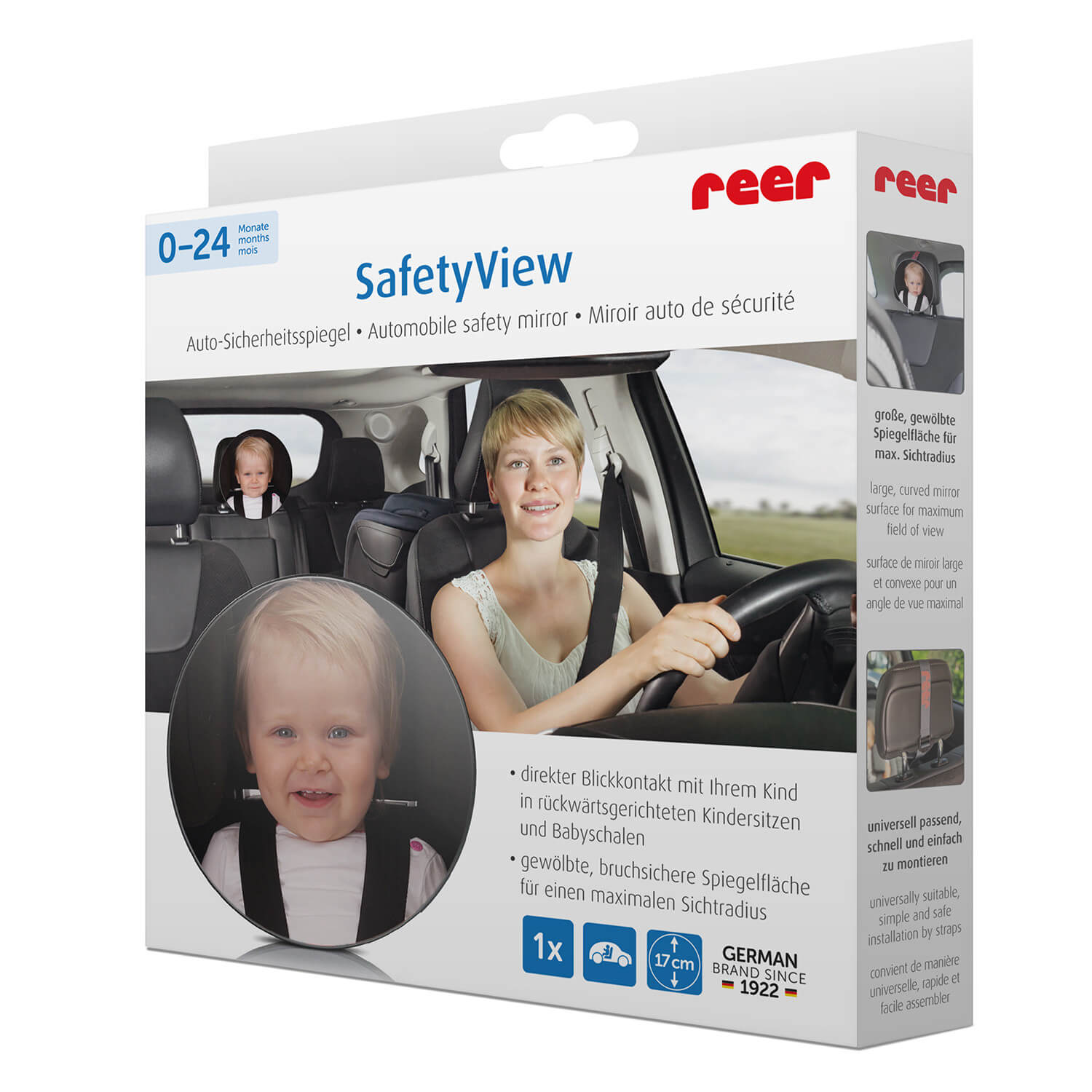 SafetyView Ви помага винаги да държите бебето под око, дори на задната седалка Изключително голямата, извита огледална повърхност дава максимален радиус на видимост. Намалява риска от инциденти Универсално подходящ за всички превозни средства със задни подглавници Огледално стъкло, пластмаса за максимална сигурност с тънка, дискретна форма Спецификация: Материал: Пластмаса Цвят: Антрацит Съдържание: 1 брой огледало, с комплект за монтаж Размер на опаковката: 17.5 см x 3.0 см x 17.5 см