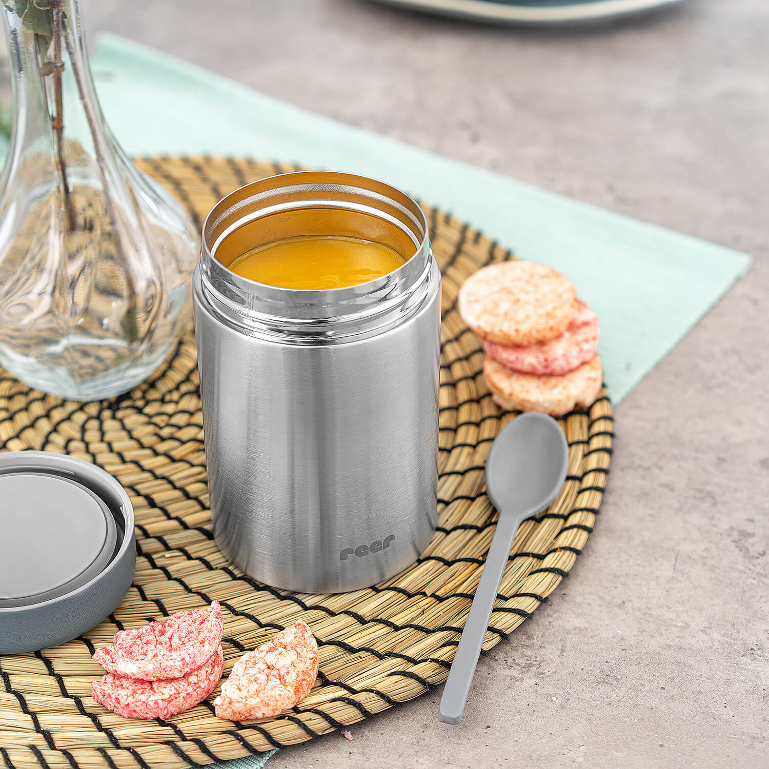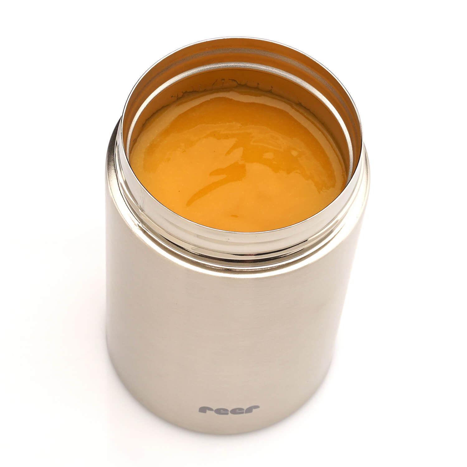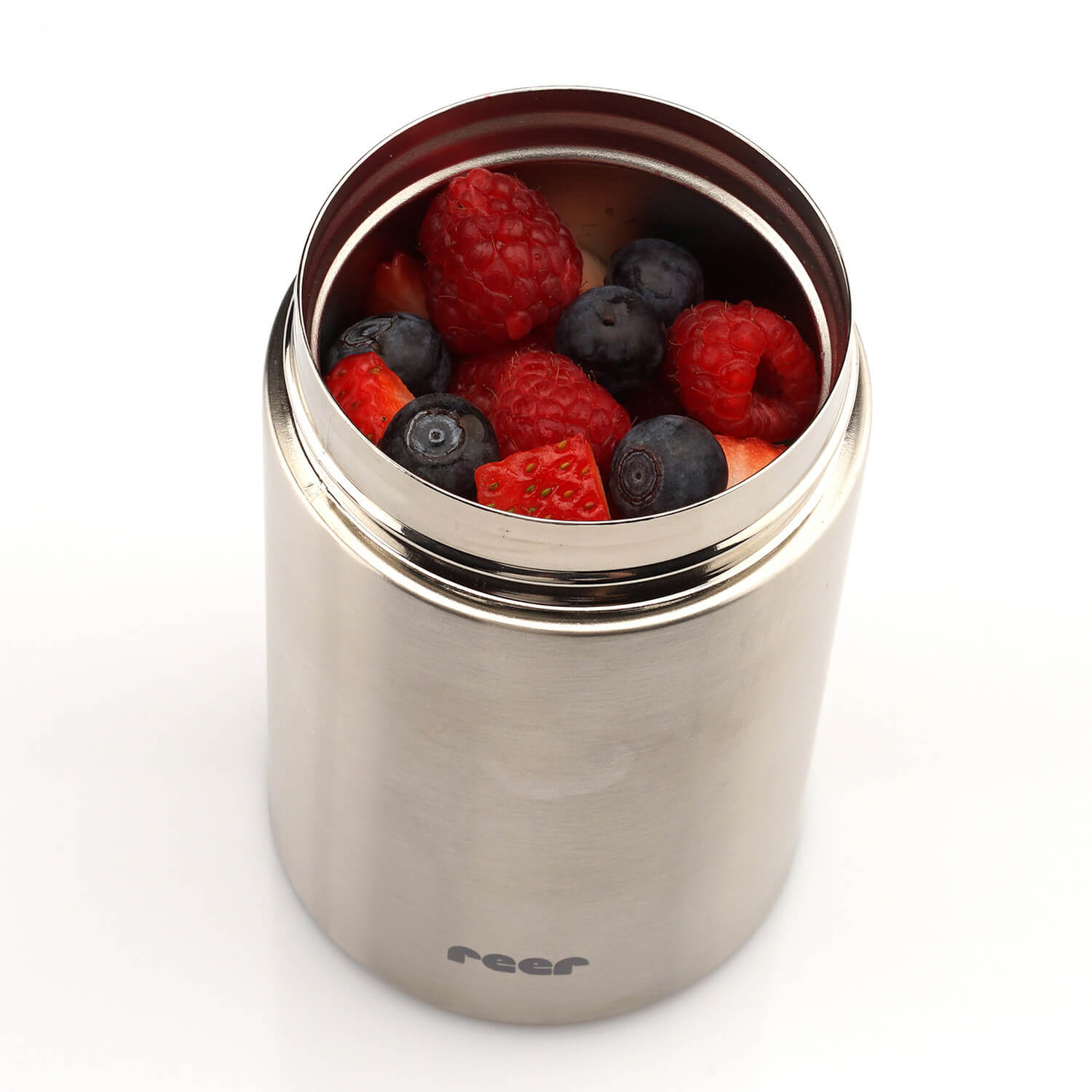 Идеален е у дома и когато сте навън Независимо дали е малка закуска или пълноценна храна, когато сте навън и със деца, най- добре е винаги да имате нещо под ръка. Когато малките се нуждаят от питателна храна и се намирате далеч от дома, кутията за съхранение си струва всяка цена. Термо кутията ColourDesign позволява безопасното и непропускливо транспортиране на храната, като я поддържа топла до 6 часа. За лесно съхранение запазва храната топла до 6 часа Термо кутията ColourDesign се състои от вакуумно изолирано двойно панелно тяло. Това гарантира, че горещата храна се поддържа топла до 6 часа - независимо от външната температура. Широко приложение Вкусна храна по всяко време Дори когато детето ви порасне и не яде пюрета, термо кутията остава ваш верен спътник при пътувания навън. Например, мюсли, ядки и бисквити могат безопасно да се съхраняват в кутията. В топлите дни плодовете и зеленчуците се поддържат приятно хладни, като се гарантира, че не губят свежестта си. Противокапкова система благодарение на