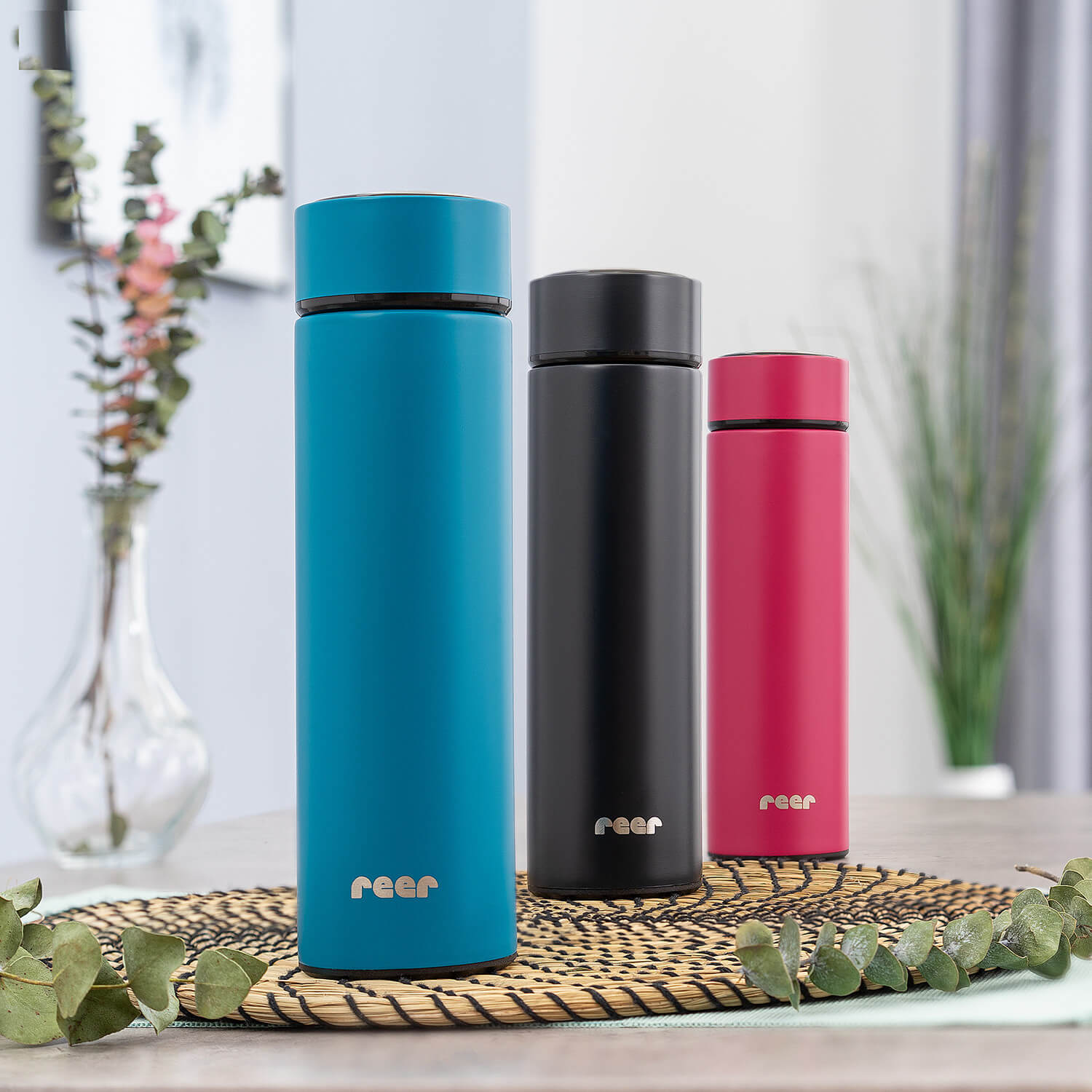 Идеален е у дома и когато сте навън Когато малките гладуват, обикновено трябва да действате бързо. Наред с храната и бутилката, има едно нещо, от което се нуждаете преди всичко: вода с перфектната температура. Термосът ColourDesign гарантира, че ще имате необходимата вода. Независимо дали вие и вашето бебе сте навън или се разхождате в кухнята през нощта, полуспящи: термосът поддържа вода топла с часове, което ви позволява бързо да приготвяте формулата (адаптирано мляко) без никакви притеснения. За лесно приготвяне на разтворими храниподдържа водата топла до 12 часа Термосът ColourDesign се състои от вакуумно изолирано тяло с два панела. Това гарантира, че горещата вода се поддържа топла до 12 часа. Благодарение на двойната изолация външната страна на бутилката никога не се нагрява, когато се напълни с гореща вода - по този начин предпазва от изгаряния. Практическа помощ навън напитка в ръка по всяко време Дори когато детето ви порасне и не пие вече мляко, термосът остава ваш верен спътник при пътувания навън. В студените