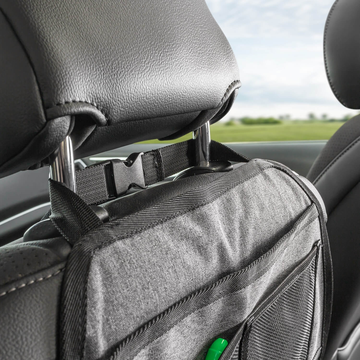Подреденост и защита в движение Дългите пътувания с кола понякога могат да бъдат много стресиращи за родителите и децата. Седейки дълго време и монотонността на подвижните пейзажи, децата ви бързо се отегчават. Те не искат да седят повече, а искат да бъдат заети. Плюшените играчки, книги и игри правят пътуванията с автомобил по-приятни за децата. В органайзера на задната седалка на автомобила TravelKid Tidy можете да съхранявате безопасно всички неща, които правят детето ви щастливо по време на пътуване с кола и в същото време да предпазват седалките. Защитната подложка за кола е само един от елементите в новата ни серия TravelKid. Тези продукти осигуряват безопасност и ред в автомобила и улесняват пътуванията с деца. Полезно организационно решение за безопасно съхранение С TravelKid Tidy вашето дете винаги има готови за игра неща по време на пътуване с кола. Седем отделения с различен размер, някои с велкро закопчалки, осигуряват достатъчно място за всичко, от което се нуждаете в движение: от приятни играчки, книги и материали за рисуване към храна за пътуването. Това ви дава възможност да се от