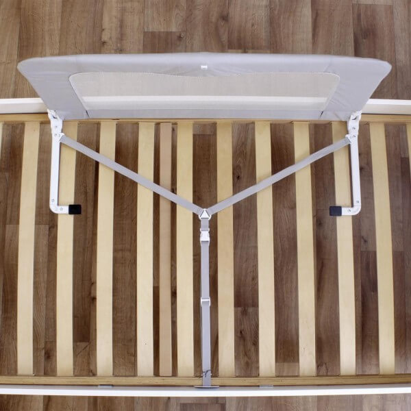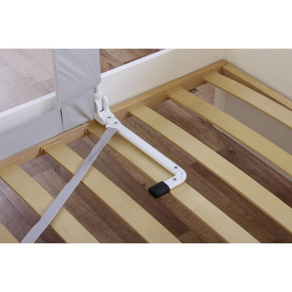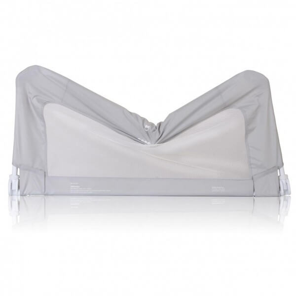 С преградата за легло на Reer Вие и Вашето дете може да спите спокойно След прехода от бебешкото креватче към детското легло децата могат да паднат от леглото докато спят, което е стресиращо и болезнено преживяване. Преградата е универсална и се монира лесно между матрака и подматрачната рамка, без да се налага да пробивате леглото. През деня преградата може да се свали надолу (не е възможно при всички видове легла) Изработена е от метална рамка с висококачествена мрежа от найлон, не съдържа ПВЦ и фталати. Осигурява сигурност и безопасност чрез фиксиране с колан и метална пластина Удобна и сгъваема, идеална за дома и в движение с практична чанта за лесно съхранение и транспорт. Спецификация Подходяща за деца от 18 месеца до 5 години Максимално тегло 22,5 кг. Функция за сгъване, когато не е необходима. Размери: 150.0 см х 50,0 см (Ш х В)