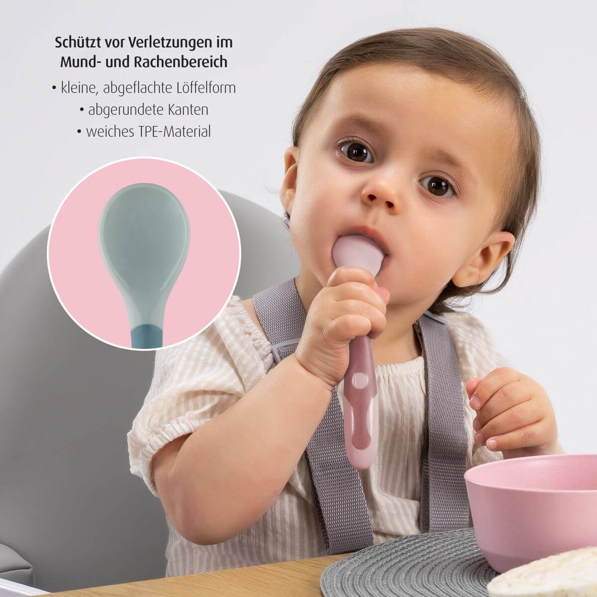 Огъващи се на 360 градуса, гъвкави прибори за привикване към самостоятелно хранене! Защо да изберете гъвкавите прибори REER Еднакво лесни за използване, както с лява, така и с дясна ръка Безопасно боравене благодарение на кръглите форми Отговаря на стандарта за безопасност EN 14372 Подходящ за съдомиялна машина Съдържание: 1x вилица, 1x лъжица Материал: PP/TPE Цвят: син Предлага се в два цвята син и розов