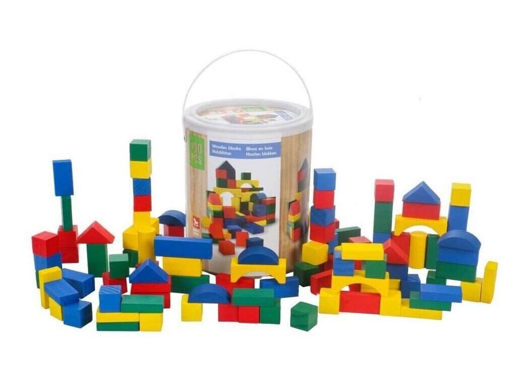 Комплектът вкючва 100 броя цветни блокчета в различни форми. Позволете на вашето дете да развихри въображението и креативността си. Часове забавление и различни възможности за игра. Ръбчетата на блокчетата са заоблени, така, че детето да не може да се нарани. Спецификация: Материал: дърво Възраст: 6 месеца + Размери на опаковката: 22 х 18 см Тегло: 1кг