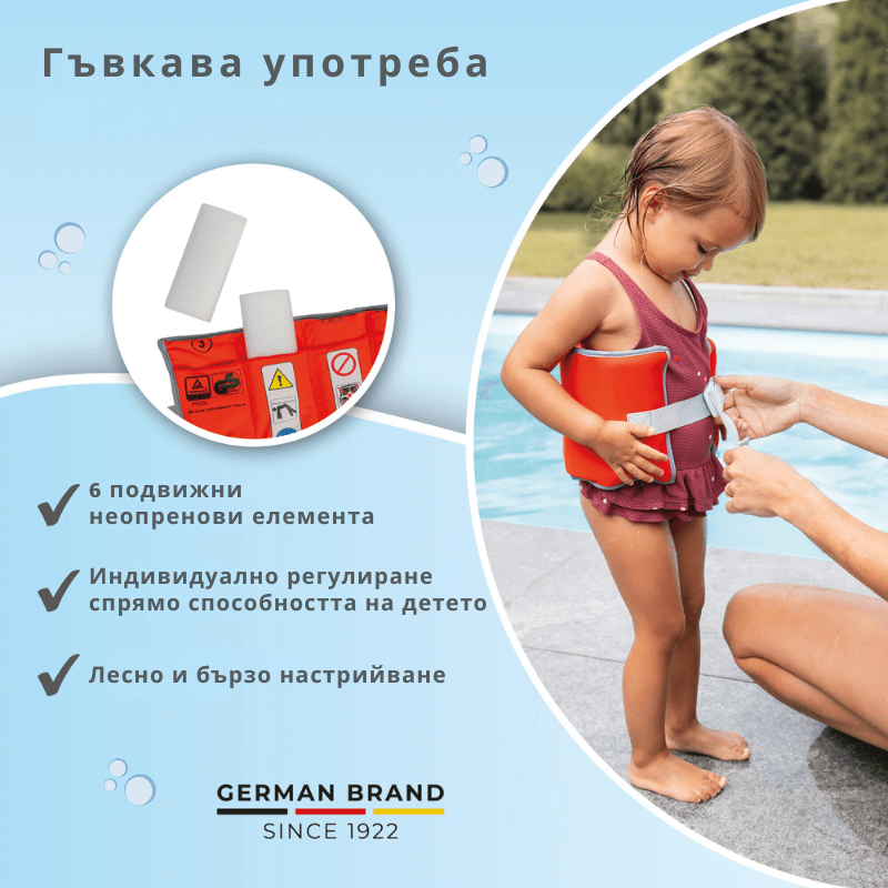 MySwimBuddy - за безопасно изживяване във водата! След като детето ви се научи да плува, във водата се отваря свят на забавления и приключения. Повечето деца обичат да лудуват в басейна и да изпитат освежаващото усещане на водата, което е толкова различно от всичко друго. За да сте сигурни, че плуването е не само забавно, но и безопасно, правилните аксесоари за безопасност при плуване са от съществено значение. Колан за плуване MySwimBuddy Коланът от серията MySwimBuddy на Reer е още един помощник за бъдещи шампиони! Той е предназначен за деца от 2-6 години( 15-30 кг), но такива, които вече имат основни познания по плуване. Коланът служи само за усъвършенстване на уменията, не е предназначен за предпазване от удавяне. Изработен от висококачествени материали, лесна закопчалка с без степенно настройване на дължината - коланът лесно се регулира според нуждите. В допълнение неговата модулна структура позволява регулиране и на потъваемостта заедно с повишаване на уменията на детето: Как се ползва: Коланът за плуване MySwimBuddy на Reer е с приятна на допир материя и лесни за използване закопчали. От вътр...