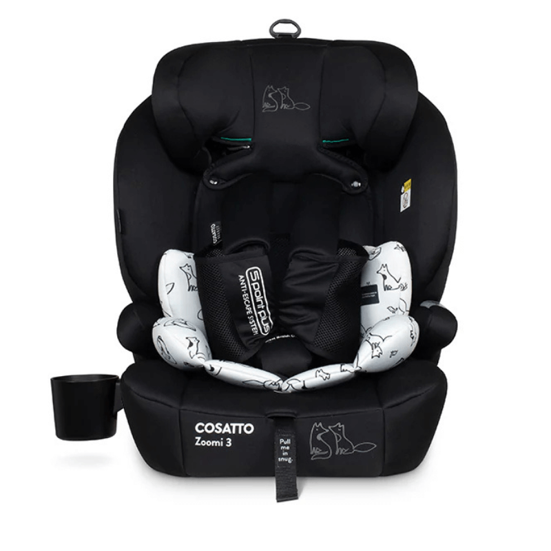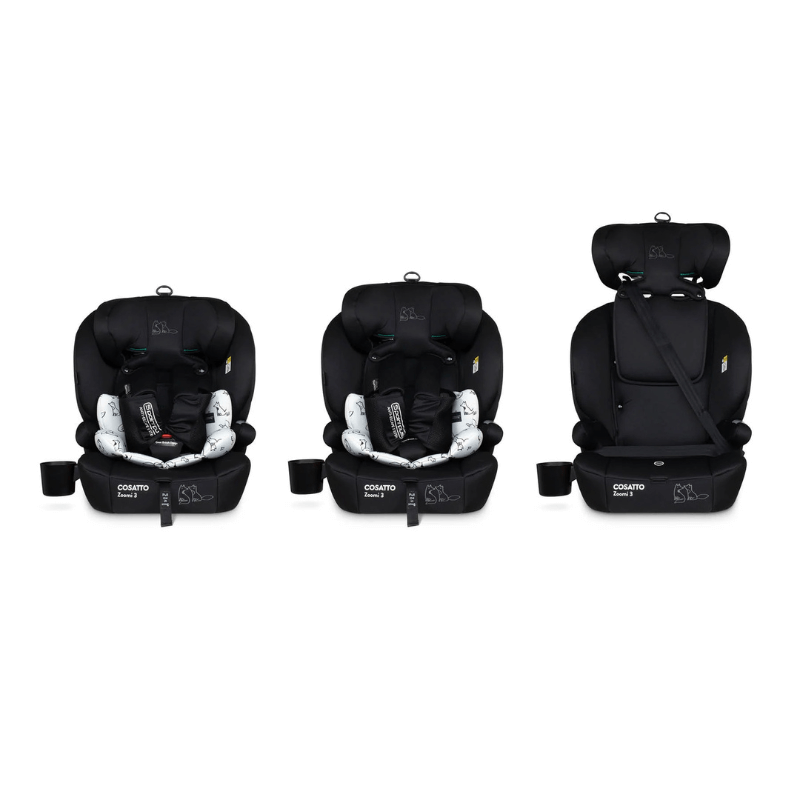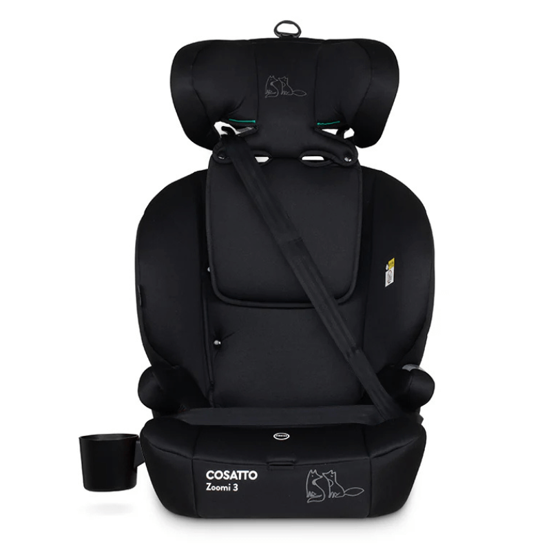 Zoomi 3 i-size вече е тук! В най-новите cosatto дизайни и още по-строги изисквания по време на производството! В допълнение - top tether колан за монтаж и държач за напитки. Една любима екстра от неговия по-стар събрат Ninja! Топ предимства на Zoomi 3 i-size: Отговаря на стадрарта R129/03, но е Тестван съобразно изискванията на ADAC - по-сериозни тестове , надвишаващи изискванията на стандарта i-size (R129/03) Коланите на столчето също са тествани за по-голямо тегло на детето - вече до 20 кг. Може да се ползва по 2 начина: i-size столче в посока на движението за деца от 15 месеца (76 -150 см); Обезопасяване с предпазните колани на столчето, монтаж с isofix + TopTether монтаж Бустерна седалка 100-150 см ; Обезопасяване с коланите на автомобила; Монтаж само с isofix или isofix+TopTether Мемори пяната на столчето абсорбира силата на удара и осигурява по-голяма защита 5точковият колан е с бързо разкопчаване при необходимост, но досатъчно сигурен за да държи детето на мястото. Анти-ескейп системата предпазва от нежелано откопчаване от детето За по-плътно прилятане разполага с 10 степени на настройка на облегалката Тапицерията се сваля и пере ЕКО материя