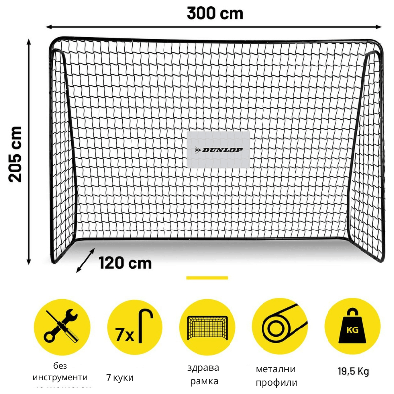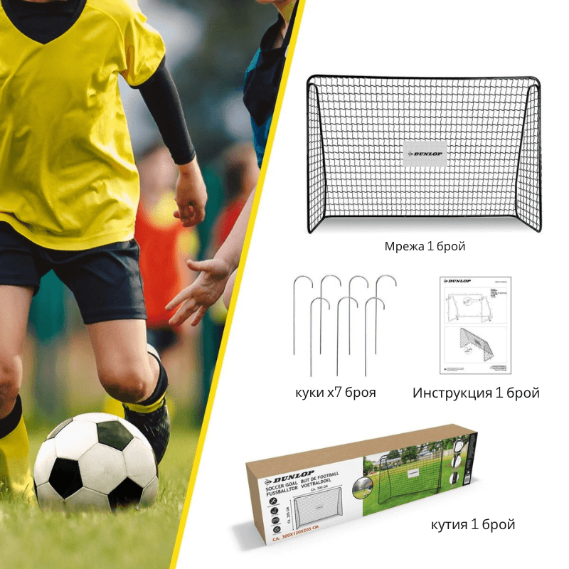 Тренирай своите футболни умения с тази здрава футболна врата от Dunlop. Вратата е с дължина 300 сантиметра, широка 205 и висока 120 сантиметра. Това я прави перфектното решение за любителите на футбола от всички възрасти. Футболната врата може да бъде поставена бързо и лесно с помощта на клик система. Благодарение на стоманения материал и 7-те куки за фиксиране в земята, вратата стои стабилно и не пада лесно. Гредите на футболната врата са обградени от EPE пяна. Ако вратата падне, има по-малка вероятност подът да бъде повреден. Всеки знае, че футбол може да се играе на всяка възраст. Мачовете, играни със семейство или група връстници, са много популярни. Ако всички във вашето семейство обичат да играят футбол или може би някое от децата ви практикува този спорт ФУТБОЛНА ВРАТА DUNLOP С МРЕЖА 300X205X120CM ще бъде идеалният избор за допълнение към тренировките му, всичко, от което се нуждаете, е топка! Идеална за двора или парка: Създайте собствено футболно игрище във вашия двор! Забавлявайте се още повече, вкарвайте голове, упражнявайте мерника си и спрете да тичате за топката. ФУТБОЛНА ВРАТА D...