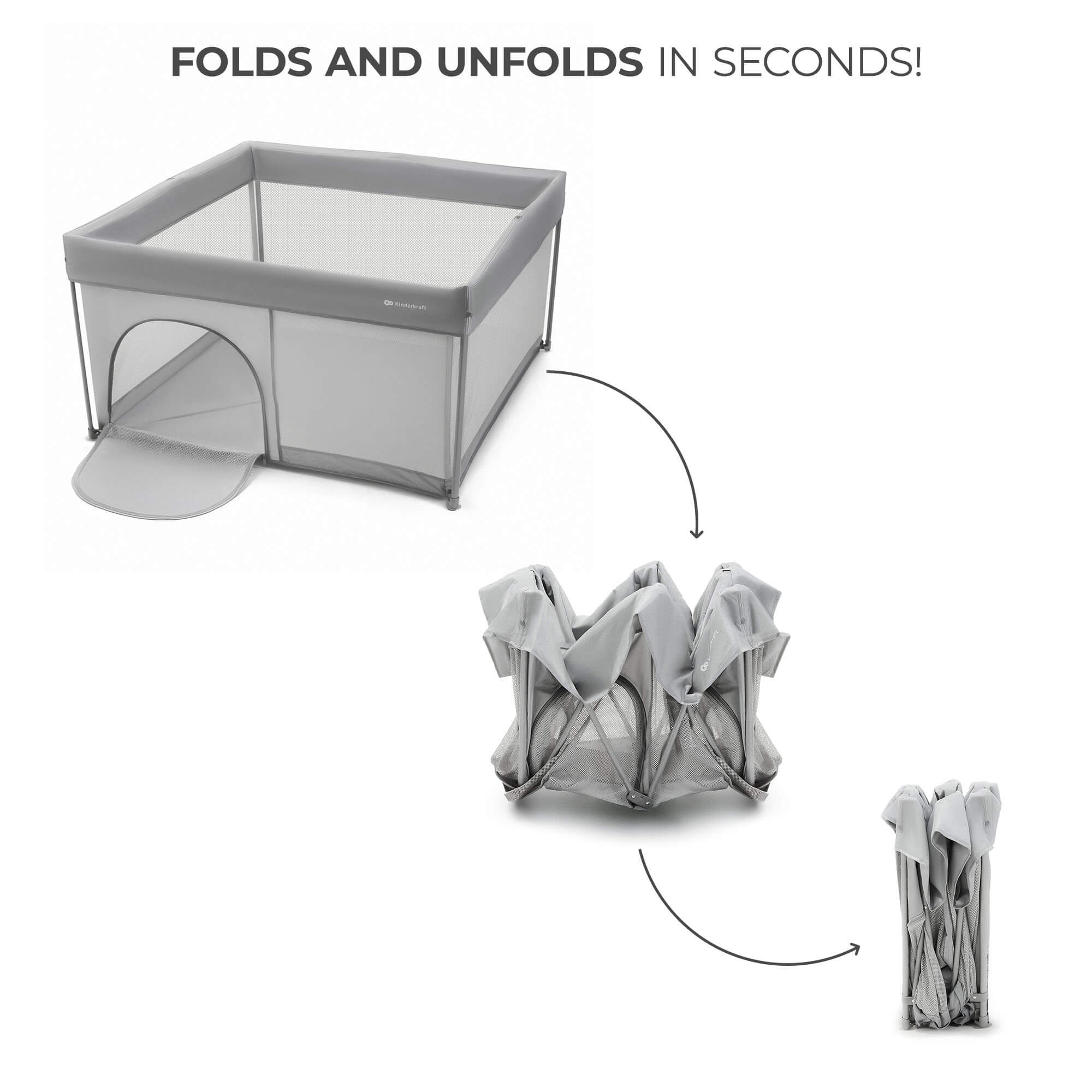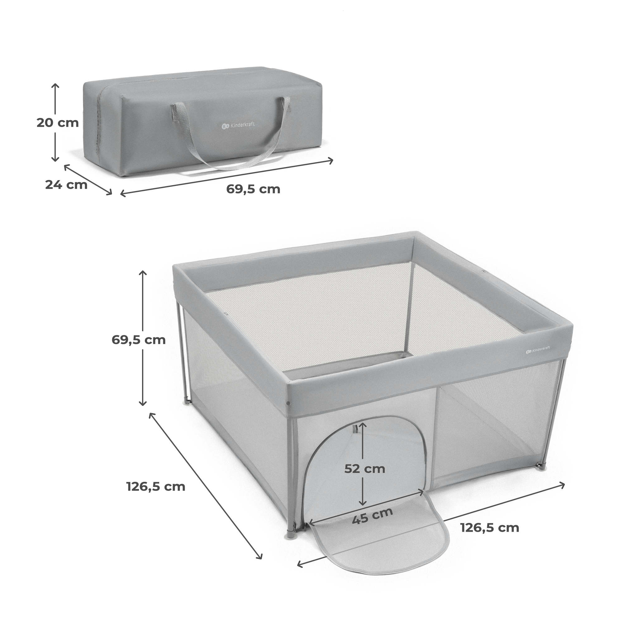 Бързо сгъване и разгъване на кошарката Можете да разгънете кошарката ZIKI за секунди и да я сгънете също толкова бързо след игра. Това я прави изключително практично решение дори за заети родители. Благодарение на компактния си дизайн и чанта, можете лесно да я съхранявате. ZIKI ще се окаже полезна, както за ежедневна употреба у дома, така и по време на пътувания. Ключови характеристики: Лесен и удобен транспорт Лекият дизайн на кошарката и включената чанта за носене улесняват вземането на ZIKI навсякъде: на почивка, когато посещавате баба и дядо, на тераса или в градината. Здрава стоманена конструкция: Здравата стоманена рамка на кошарката осигурява стабилност и по този начин безопасността на детето по време на игра. Тя също така гарантира издръжливост, така че ZIKI ще служи за години употреба. Подходяща е за деца от раждането до 4-годишна възраст. Страничен вход с цип: Входът с цип позволява на по-големите деца да влизат и излизат самостоятелно, увеличавайки функционалността на кошарката. Мека подплатена подова част и дишаща мрежеста материя ZIKI поставя комфорта на малчугана на първо м