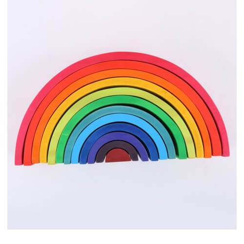 Дъгата се състои от 12 разноцветни елемента с еднаква форма и различна големина. С цветната дъга има множество занимания, като редене на пъзел, кула, спирала, тунел или балансираща фигура.Чрез заниманията с този продукт се развива фината моторика на ръцете, координацията между очите и ръцете, пространственото мислене, въображението и креативността. Освен това лесно се учат цветове и геометрични форми.Размери: 35.5х7х18.5 см, тегло: 800гр.Подходящо за деца над 18 месеца.Ние от Smart Baby, предлагаме качествени дървени Монтесори материали и играчки.Още идея за най-малките може да намерите тук.