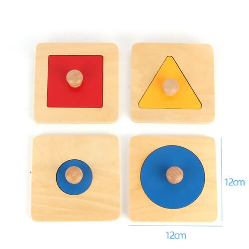 Играта съдържа 4 еднакви дървени квадратни плочи, изрязани по средата. На всяка изрязана плоча съответства геометрична фигура със същата форма. Целта на играта е детето да намери и постави дадената геометрична фигура в изрязаното място на съответния квадрат.Заниманията с тази игра позволяват на детето да развива фината моторика на ръцете, също така и да различава различни геометрични фигури.Материал: дървоРазмери на една плочка: 12х12х1см , тегло: 400гр.Подходящо за деца над 2 години. Внимание! Играта съдържа дребни елементи, които могат да бъдат погълнати.В сайта ни ще намерите голямо разнообразие от Монтесори материали и дървени играчки.Нашите продукти са предназначени да насърчават независимостта, изследването и да вдъхновяват децата да бъдат самостоятелни!