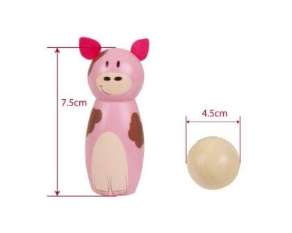Тези интересни и ярко оцветени кегли са част от забавния дървен детски боулинг ферма Bigjigs включват фермер, свиня, пиле, крава, магаре и куче. Тази игра е чудесен избор за дълги часове забавление със семейство и приятели. Дървен детски боулинг ферма развива концентрацията и подобрява сръчността на вашето дете. Той е изработен от напълно безопасни за здравето материали. Оцветяването е с бои на водна основа. Посочената цена е за 1 брой . Разгледайте още продукти в категорията "Играчки за навън" - ТУК! Комплектът съдържа: Топка Фермер Свиня Пиле Крава Магаре Куче
