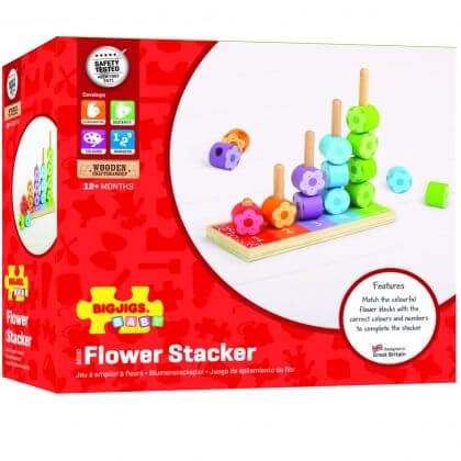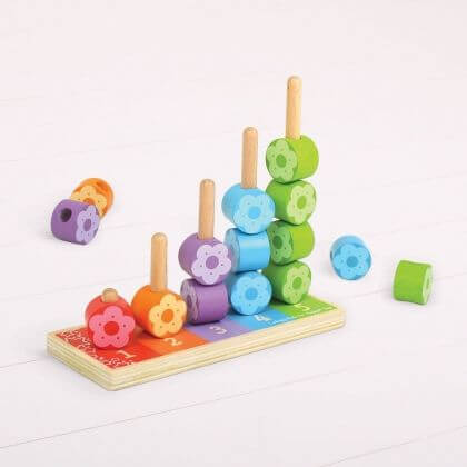 Bigjigs - Дървена игра - Моята първа игра за нанизване - Цветя