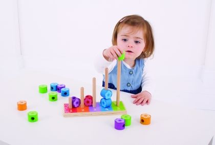 Дървена игра Моята първа игра за нанизване Цветя Bigjigs е забавна игра за нанизване, която ще помогне за визуалното възприятие, разпознаването на цветовете,началните умения за броене, както и ще стимулира фината моторика. На всяка пръчица за нанизване трябва да се нанижат определен брой цветя в показания брой на основата. Дървена игра Моята първа игра за нанизване Цветя Bigjigs идва с 16 броя цветя в 5 различни цвята и основа за нанизване. Всички части са боядисани с бои на водна основа, които са безвредни. Посочената цена е за 1 брой. Разгледайте още продукти в категорията "Дървени низанки" - ТУК! Комплектът съдържа: 16 цветя за нанизване и основа.
