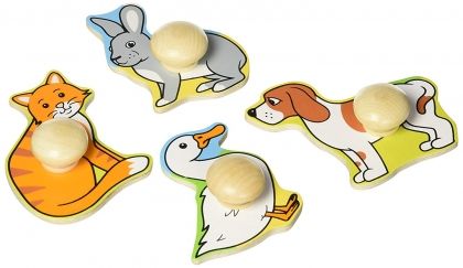 Bigjigs - Моят първи дървен пъзел с дръжки - Домашни любимци