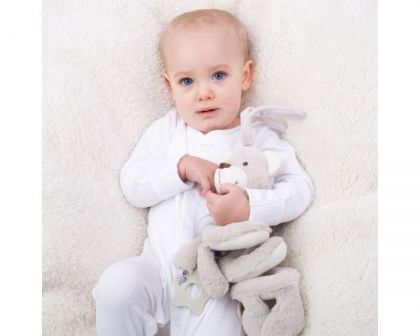 Бебешка играчка Мека дрънкалка спирала Меченце Bigjigs е във формата на спирала и може да бъде лесно закачена за креватчето или количката, благодарение на здравата закачалка. Дрънкалката издава мек дрънкащ и ненатрапчив звук, който ще успокоява бебенцата. Играчката разполага с 2 гризалки за зъбки и е в неутрални цветове. Бебешка играчка Мека дрънкалка спирала Меченце Bigjigs позволява да бъде разтягана, което спомага за развитието на координацията око/ръка и развиването на фината моторика. Посочената цена е за 1 брой. Разгледайте още продукти в категорията "Бебешки играчки" - ТУК!