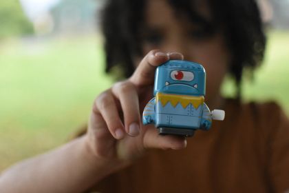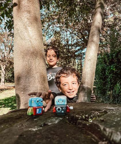 Bigjigs Мини роботи с механизъм за навиване (зелено и синьо))
