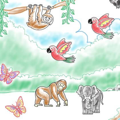 Комплект печати Дъждовна гора Melissa & Doug. Изобилие от маймуни, змии, птици и буболечки се комбинират, за да създадат джунгла направо от вашето въображение! Този изключително голям комплект печати за деца улеснява създаването на вълнуващ сюжет или цветна сцена: включва 20 контурни печати с гумена повърхност и дървена дръжка и двуцветна подложка за печати, пълна със синьо и зелено мастило, което може да се мие. Пет цветни молива се координират с темата за джунглата, за да добавят детайли и цвят в сцената. Това е цялостна дейност по изкуства и занаяти и комплект за разказване на истории в едно! Тематичен комплект печати с всичко необходимо за създаване и оцветяване на детайлни картинни сцени. Включва 20 печата, 5 цветни молива, издръжлива двуцветна подложка за печати и дървена тава за съхранение.. Вълнуваща тема за джунглата. Печатите се отличават с контурни дървени дръжки и висококачествена гума; Насърчава координацията око-ръка, наративното мислене и творческото изразяване. Прави страхотен подарък за деца от 4 до 7 години за практическа игра без екран. ПРЕДУПРЕЖДЕНИЕ: Необходим е надзор от възрастен. Разгледайте още продукти в категорията “Творчески комплекти” – ТУК!