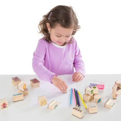 - подходящ за възраст: от 4 до 7 години - включва 20 печата, 5 цветни молива, издръжлива двуцветна подложка за печати и дървена тава за съхранение - материал: дървоПроизводител