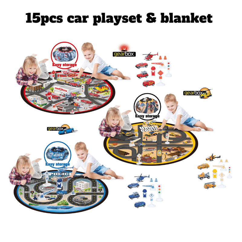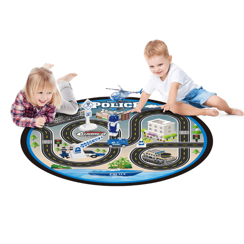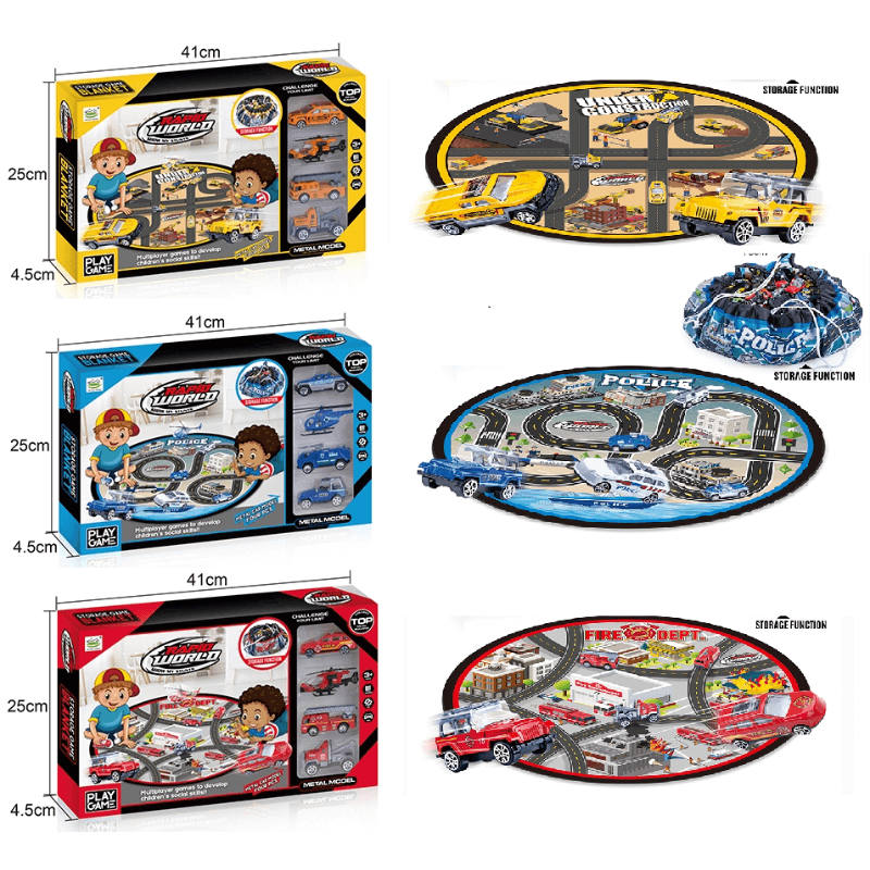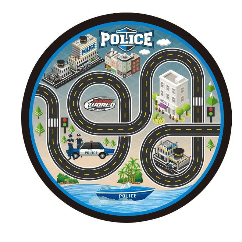 Комплектът колички с полицейска тематика и подложка за игра е вълнуващ и забавен комплект, предназначен да разпали детското въображение и да осигури часове забавление. Този комплект включва различни елементи и аксесоари, за да създаде завладяваща атмосфера на полицейско приключение. Характеристики на продукта: Подложка с полицейски дизайн: Комплектът се предлага с мека и удобна подложка с впечатляващ полицейски дизайн, която ще потопи децата в атмосферата на полицейските приключения. Мини полицейски колички: Комплектът за игра включва няколко детайлни миниатюрни полицейски колички, позволяващи на децата да играят ролеви полицейски преследвания и патрули. Аксесоари: В допълнение към полицейските колички, комплектът включва и аксесоари като пътни знаци, барикади и други елементи, които допринасят за реалистична игра.Лесно пренасяне: Подложката се сгъва лесно за носене, което позволява на децата да се наслаждават на полицейски приключения по всяко време и навсякъде. Образователен: Освен чисто забавление, този комплект за игра може да бъде и образователен. Децата