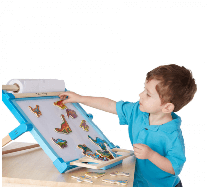 Дървени магнити динозаври Melissa & Doug представлява комплект от детски магнити под формата на различни динозавърчета. Те идват в различни размери и форма. Магнитите са подходящи за деца над 2-годишна възраст. Магнитите могат да се подреждат по различни начини върху хладилника или друга метална повърхност и ще подарят часове приятни игри и занимания на детето Ви. След края на играта, можете да приберете всички части в удобната дървена кутия. Заниманията с дървени магнити динозаври Melissa & Doug развиват творческото мислене, въображението, фината моторика. Посочената цена е за 1 брой. Разгледайте още продукти в категорията "Магнитни игри" - ТУК! Комплектът съдържа: 20 броя магнити с различни динозавърчета за подреждане.