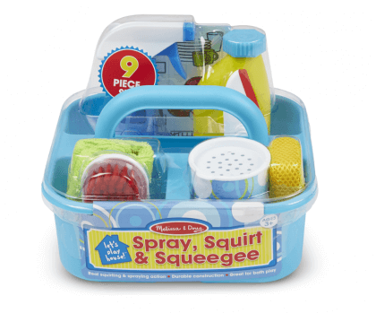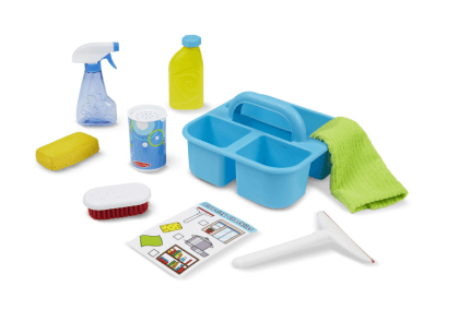 Детски комплект за почистване на прозорци и мебели Melissa & Doug, което ще позволи на детето Ви да се включи в домакинската работа, като я направи забавна игра. Така ще можете да го научите на отговорност и поддържане на чистота в дома по лесен и достъпен начин. Принадлежностите са удобни за хващане и използваеми. Шишенцата могат да се пълнят с вода, което прави играта още по-реалистична. Сложете всичко, което ви е необходимо за почистването в органайзера с дръжка и нека играта да започне. Заниманията с Детски комплект за почистване на прозорци и мебели Melissa & Doug ще развият ролевата игра, фината моторика и двигателния апарат. Посочената цена е за 1 брой. Разгледайте още продукти в категорията "За детската стая" - ТУК! Комплектът съдържа: текстилна кърпа четка гъба бутилка спрей бутилка за шприцоване кутийка с дупчици чистачка списък с задачи за почистване органайзер