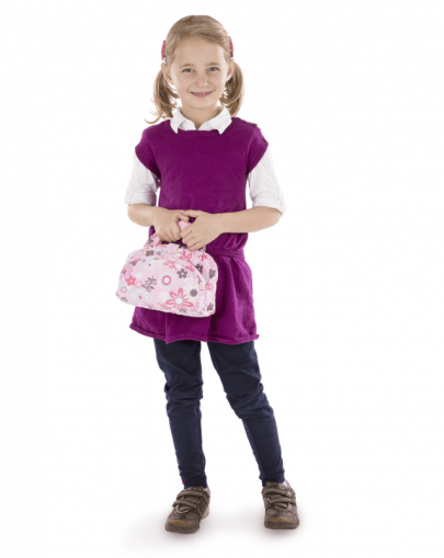 Подходяща възраст: 3+ Размер на опаковката: 27 см х 21 см х 12 см Размер на чантичката: 20,5 см х 21 см х 12 см Материал: Текстил и пластмаса Комплектът съдържа: 7 части (чантичка, пелена, кутийка с 3 кърпички, кремче против обриви) Време за доставка: Един работен ден