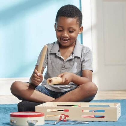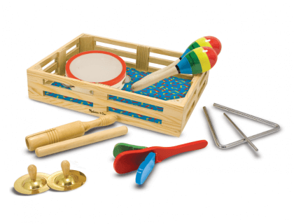 Комплект музикални инструменти Банда в кутия Melissa & Doug има всичко, от което децата в предучилищна възраст имат нужда, за да формират музикална банда, да стартират солова кариера или просто да се насладят на музиката. Комплектът включва дайре, чинели, маракаси, клапъри, триъгълник и гуиро, които са в удобна дървена кутия. Заниманията с комплект музикални инструменти Банда в кутия Melissa & Doug са полезни за фините моторни умения, както и за музикалния слух и чувството за ритъм. Посочената цена е за 1 брой. Разгледайте още продукти в категорията "Музикални играчки" - ТУК! Комплектът съдържа: дайре, 2 чинели, 2 маракаса, клапъри, триъгълник с палка и гуиро с палка.
