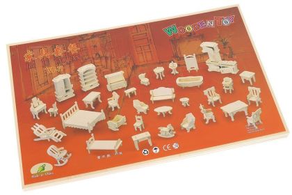 Подходяща възраст: 3+ Размери на опаковката: 30 х 33 х 9 см Материал: Дърво и текстил Комплектът съдържа: 34 мебели от 175 елемента, 4 комплекта шперплат с изрязани мебели, 3 броя шкурка Максимална височина на мебелите: 12см Време за доставка: Един работен ден