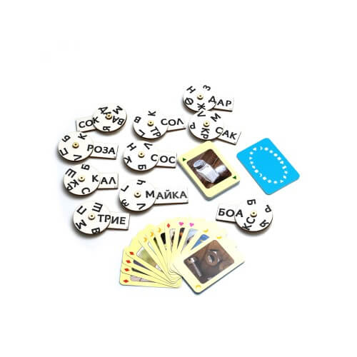 Игра за съставяне на думи, чрез завъртане. Играта съдържа 10 въртящи се дървени плочки за образуване на думи и 50 карти със снимки. С всяка плочка могат да се съставят точно 5 думи, като на всяка дума отговаря точно определена карта. В долния десен ъгъл на плочките има гравиран малък символ (детелина, сърце и т.н.), който съответства на символа на картите и показва кои карти към коя плочка се отнасят. Шрифтът, използван на въртящите се плочки, е специално създаден за хора с дислексия от Кристина Костова. Той е отпечатан на рециклирана хартия, която намалява контрастът между фон и текст, за удобство на децата с четивни затруднения. Целта на играта е децата да упражняват разпознаването и произнасянето на буквите и да стимулира интереса им към четене в началния етап на изграждане на умението.Подходящо за хора с дислексия. Подходящо за деца над 5 години.Още много детски книжки за най-малките можете да откриете ако кликнете тук.Smart Baby предлага на своите клиенти богат избор от Монтесори материали и играчки.