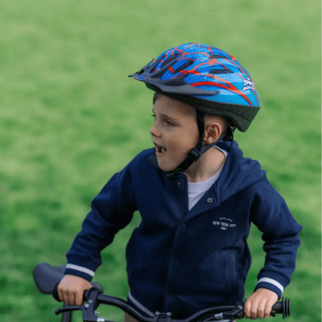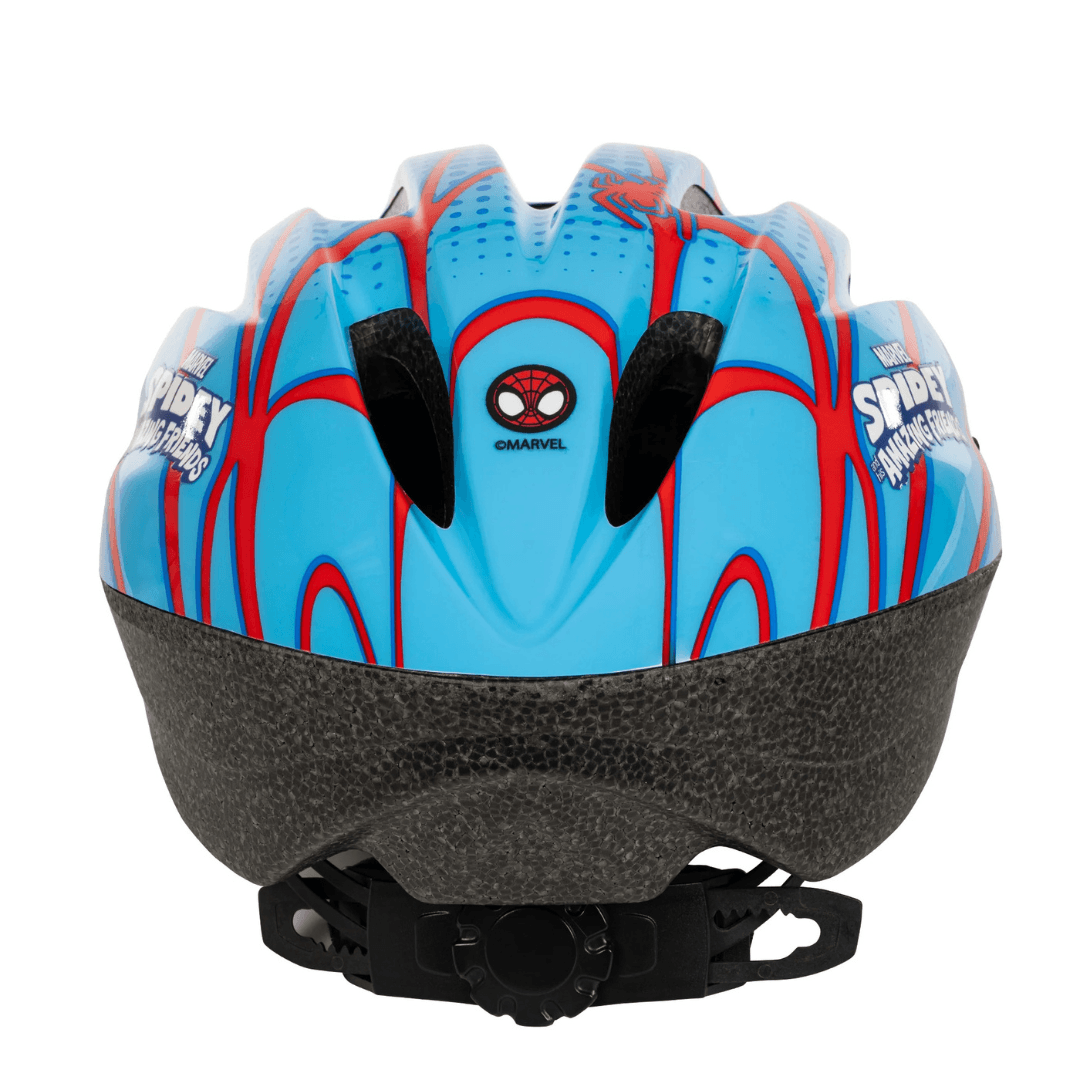 Впуснете се в приключение с каската Spiderman и приятели! Перфектна за вашия малък герой, тази каска е покрита с ярки графики с изображения на Спайди, Призрачния паяк и Спин, превръщайки всяко каране на колело или тротинетка в невероятно приключение. Проектирана както за безопасност, така и за комфорт, тази каска е създадена да предпазва по време на всяка мисия. Регулируема система за прилягане отзад осигурява плътно и сигурно прилягане за размери на главата между 50-54 см и е лесна за регулиране, докато расте. За да поддържат малкия ви паяжинар хладен, докато е в движение, десет вентилационни отвора осигуряват отлична вентилация в топлите дни. Леката, залепена черупка предлага надеждна защита, без да се усеща обемиста, а подвижният преден козирка помага да предпази очите им от слънцето. Напред, Паячета, Напред! Спецификация: За деца 4-7 години Обиколка на главата: 50-54 см Отговаря на стандарт: CPSC/EN1078 Информация за безопасност: Внимание! Децата не трябва да носят тази каска, докато участват в дейности, при които има риск да се обесят и да бъдат заклещени в каската. Не мийте каска