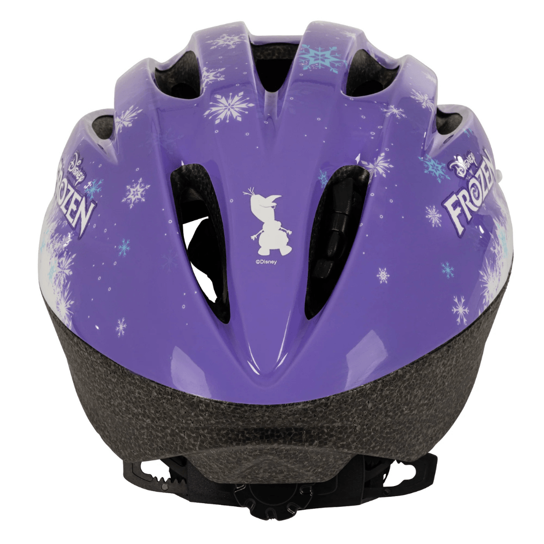 Дори в магическия свят на Арендейл е безопасността е на първо място! Впусни се в приказно приключение с прекрасен аксесоар - тази очарователна каска на Disney Frozen! С красиви графики на Елза и Анна, тази каска е перфектният аксесоар за опознаване на собственото ви кралство с колело или тротинетка. Проектирана за безопасност и комфорт, тази каска ще защити вашето мъниче във всичките му приключения. Лесната за използване система за регулиране отзад позволява плътно и сигурно прилягане на глава с размери от 50-54 см и може бързо да се регулира, спрямо нуждите на детето. Десет вентилационни отвора осигуряват отличен въздушен поток за максимален комфорт. Леката, залепена черупка предлага надеждна защита, без да ги утежнява. Това е идеалният начин да останете в безопасност, докато създавате вълшебни спомени! Спецификация: За деца 4-7 години Обиколка на главата: 50-54 см Отговаря на стандарт: CPSC/EN1078 Информация за безопасност: Внимание! Децата не трябва да носят тази каска, докато участват в дейности, при които има риск да се обесят и да бъдат заклещени в каската. Не мийте каската с въглеводоро