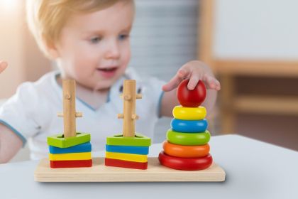 Цветен дървен сортер низанка за деца
