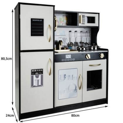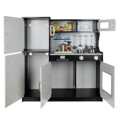 Модерна дървена кухня за игра със звуци, светлина и аксесоари - черна - Kruzzel