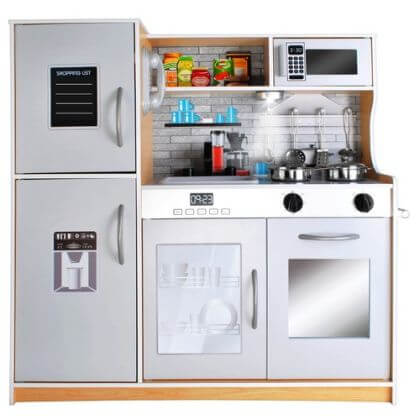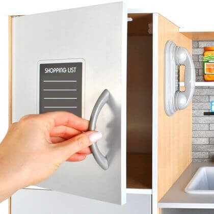 ✅ Дървена детска кухня Подходяща за деца 3+, с модерен дизайн в светло кафяво и сиво. ✅ LED осветление и звук Свети и издава звуци за още по-реалистична игра. ✅ Размери 80x80,5x24 см, идеална за детска стая. ✅ Захранване Използва 3 AAA батерии (не включени). ✅ Тегло 13,65 кг с опаковката. ✅ Бърза доставка Един работен ден!
