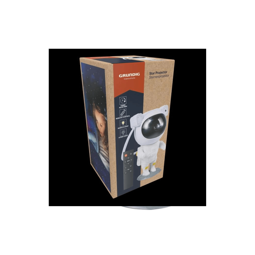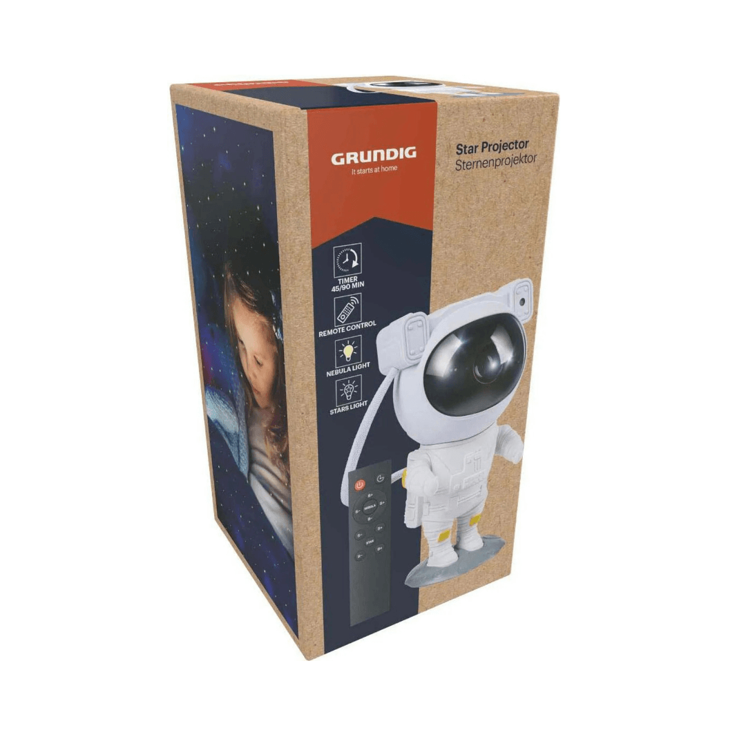 Проекторът астронавт на Grundig ще превърне всяка детска стая в магическа галактика! Grundig астронафт e перфектното допълнение към детския интериор. Проекторът създава хипнотизиращо звездно небе и носи успокояваща атмосфера за сън или развиваща въображението среда по време на игра. Всяко малко дете си мечтае за Космоса, а той не е бил по-близо от сега! Удобното дистанционно управление ви позволява лесно да регулирате настройките, без да ставате от леглото. Дизайнът с астронавт добавя допълнително забавление и разпалва детското въображение. Компактният му размер пасва идеално на всяко нощно шкафче или бюро. Допълнителна информация Прожектира магическо звездно небеВключва дистанционно управление за допълнително удобствоЗабавен дизайн с астронавтКомпактен размер: 15 x 15 x 25 см Работи с батерии 2x R3 AAA ( не са включени Тегло: 200г Инструкция за безопасност: Да не се използва от деца под 3 години без родителско наблюдение. Съдържа дребни части и батерии. Да не се гледа директно към прожектора.