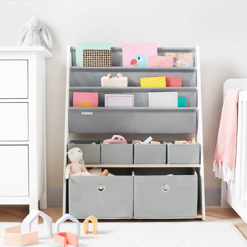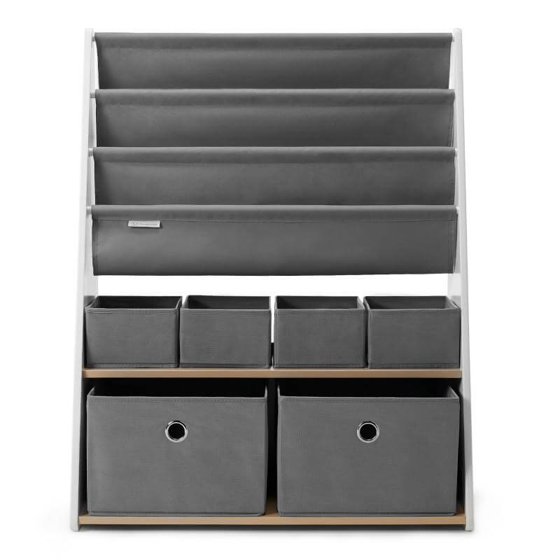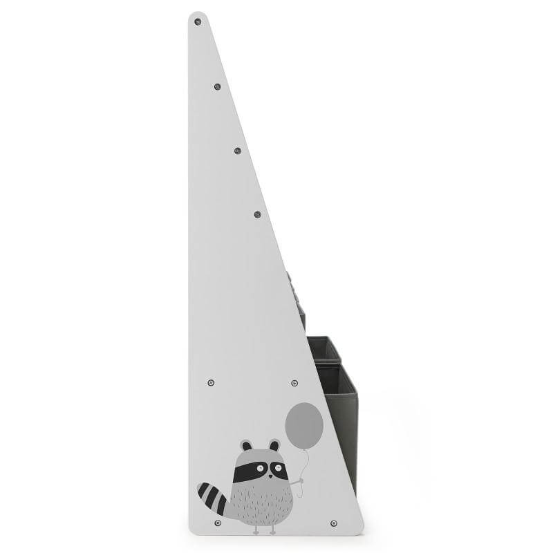 Шкаф за книги и играчки KinderKraft Racoon. Стелажът за книги с енот е уникален и неподвластен на времето. Универсалният дизайн и с насоченост към детето, комбинирани с рафтове и контейнери, го правят перфектната практична и многофункционална мебел. Може да се използва за съхранение на детски книги, играчки или дрехи. Стелажът за книги е просторен, но малък - ще се побере дори в малка спалня. Разтегателната основа и опцията за закрепване на рафта към стената подобряват стабилността, което е изключително важно в детската спалня. Благодарение на красивият изчистен дизайн, рафтът подхожда на различни цветове и обзавеждания. Отстрани има енот, който децата ще харесат! В комплект можете да добавите кутия за играчки. Детският стелаж за книги RACOON е функционален - в допълнение към четири вградени рафта, комплектът включва шест контейнера за съхранение с различни размери. Разгледайте още продукти в категорията “Обзавеждане за детска стая” – ТУК!